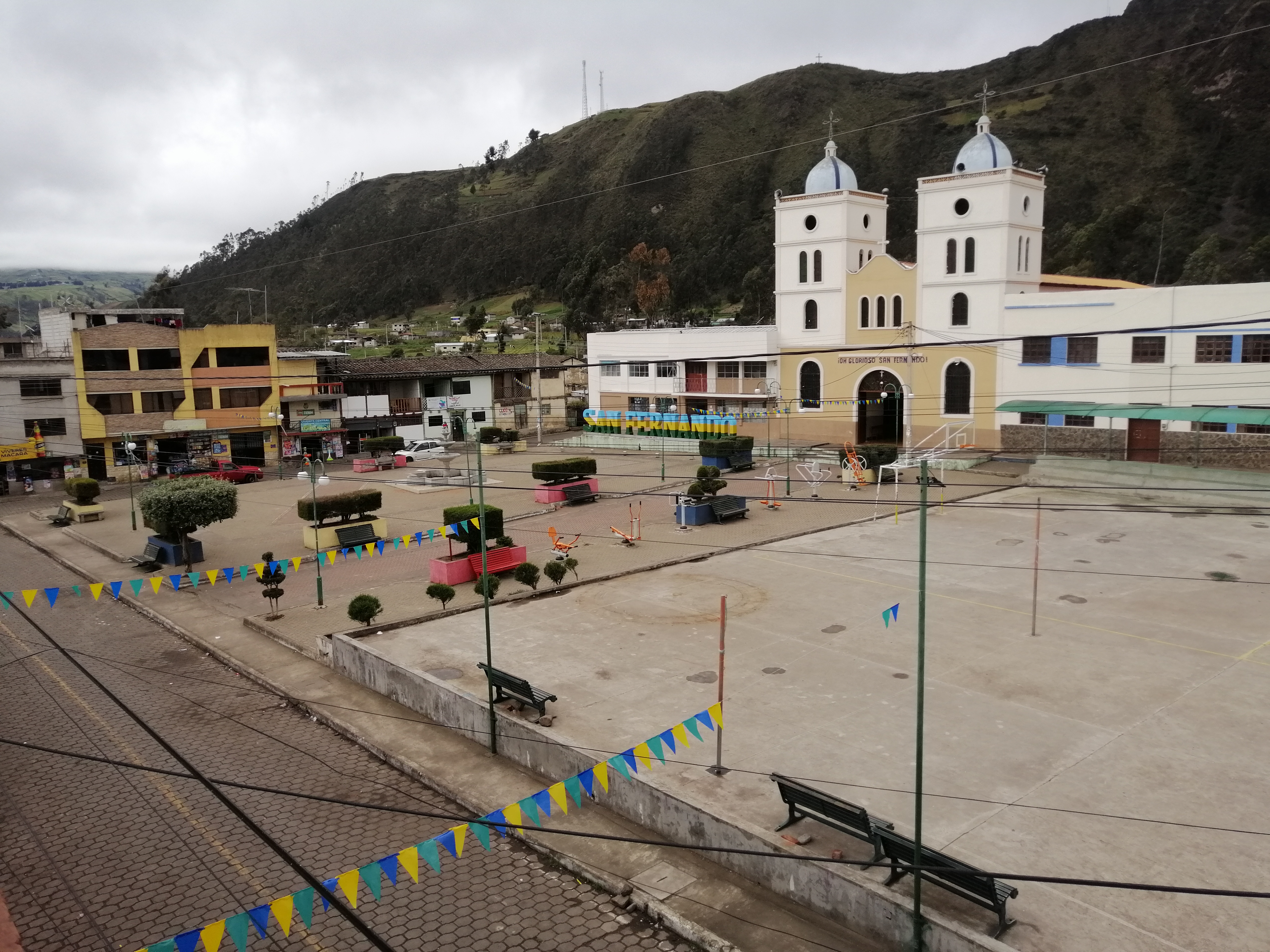 Este escenario está ubicado en el centro de la parroquia el cual cuenta con iluminación, zonas de descanso y un espacio para realización de juegos. Lugar para disfrutar de la tranquilidad de las personas que habitan en la parroquia al tener su entorno lleno de personas que sienten el poder emprender en negocios para mejorar del punto de recepción de la parroquia, la movilidad de tener a su disposición diferentes servicios, comida, tiendas, panadería, farmacia, santuario a San Fernando son las edificaciones que tiene en su alrededor y para el momento del hambre cuneta con pequeños salones de comida.