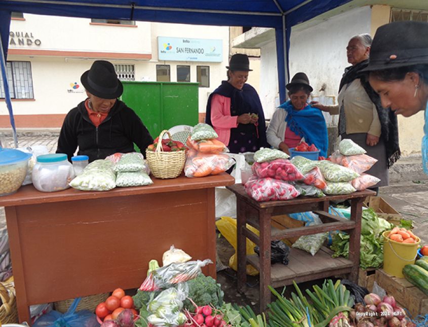 Los productores locales ofrecen sus cosechas para el consumo del hogar: papas, maíz, cebolla, zanahoria, col, habas, chochos, etc.